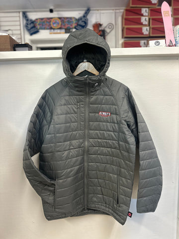 100% DWR coated microfiber nylon, with 4 grams of fiber fill is all you need for the streets and on the hill. Layer it with a Tech Zip Hoodie for those super cold days.